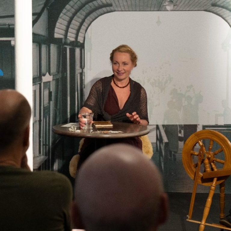 Begleitet wird die Schauspielerin Christina Kraft von Martin Preugschat aus Gager an der Gitarre und Asta Westphal aus Groß Zicker am Spinnrad.